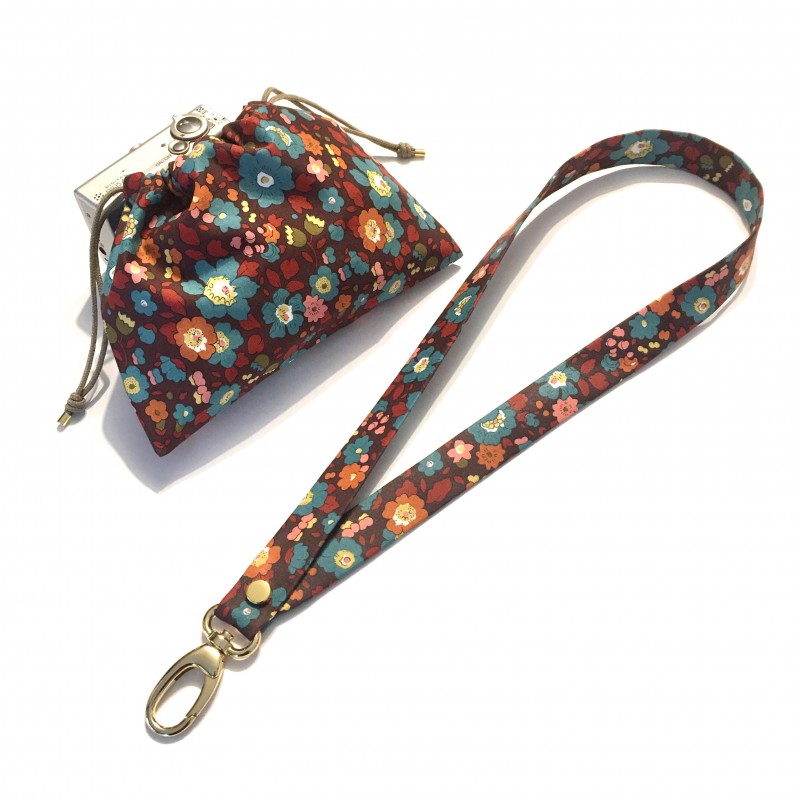 Lanyard de flores Liberty London para cámaras pequeñas con un solo enganche + bolsita de flores a juego.